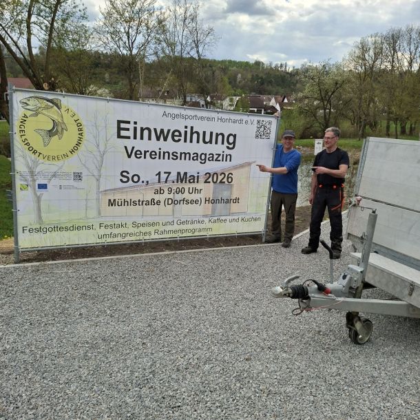 Der Angelsportverein Honhardt e.V. feiert am Sonntag, den 17.05.2026 mit der Bevölkerung und Ehrengästen die Einweihung des Neubaus des Vereinsmagazins in der Mühlstraße beim Dorfsee in Honhardt.